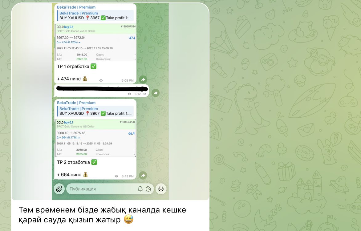 Еще один прием скамера — иллюзия заботы и комьюнити. На канале Beka Vibe Trade обещают кураторство, подробные разборы, а на деле ограничиваются рассылкой сигналов и редкими мотивационными постами. Стоит задать неудобный вопрос про серию «сливов» — и выясняется, что виноваты в них только вы.