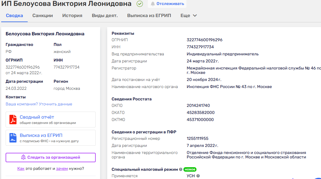 На rusprofile ru есть ИП с таким именем. Но связь между автором канала и этим ИП не доказана. Мошенники часто используют чужие данные из открытых реестров. Лицензия на профессиональную деятельность отсутствует.