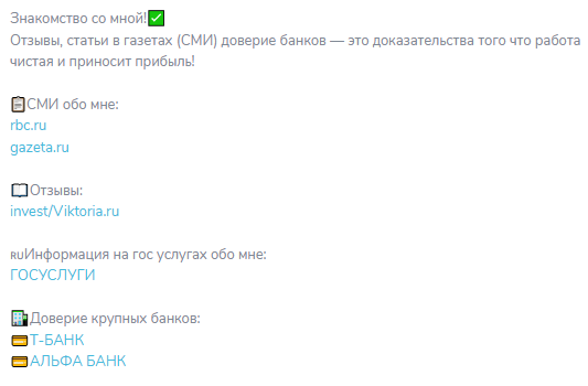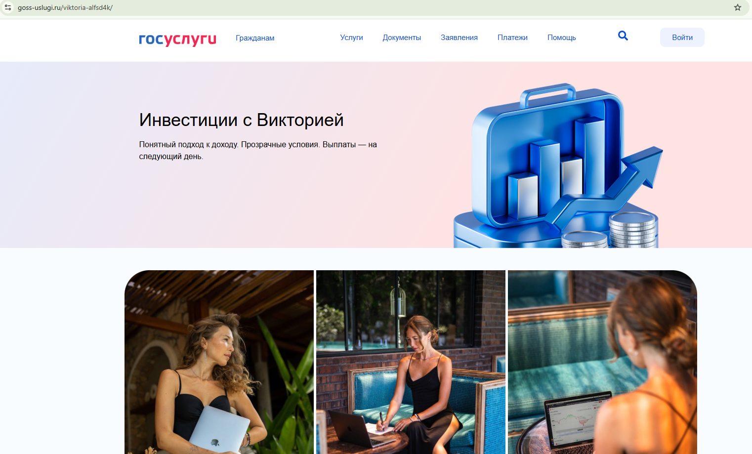 Ссылка на госуслуги ведет на goss uslugi ru. У настоящего сервиса другой домен – gosuslugi ru. Госуслуги вообще не создают страницы для трейдеров. Очередной фейк для создания положительного впечатления. Упоминается доверие Т-Банка и Альфа Банка. Никаких официальных бумаг нет. Просто названия без подтверждений.
