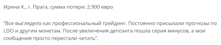 Похожая ситуация случилась и с Ириной из Праги, заработать ей так и не удалось, хотя по началу сделки приносили деньги. После серии неудачных сессий обращения в ЛС стали оставаться без ответа.