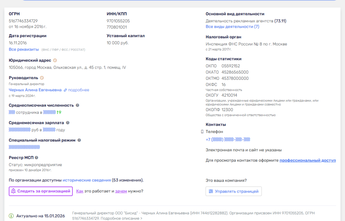 В процессе проверки информации, предоставленной порталом beseed ru, мы выявили следующее. Домен маркетплейса был зарегистрирован в интернете 19 мая 2014 года. Около двух лет платформа вела нелегальную деятельность. Так как ООО «Бисид» было зарегистрировано 16 ноября 2016 года. На момент проверки руководителем организации является Черных А. Е. Основная деятельность микропредприятия – рекламное агентство. За 9 лет существования ООО дважды выступало в судах в качестве ответчика.