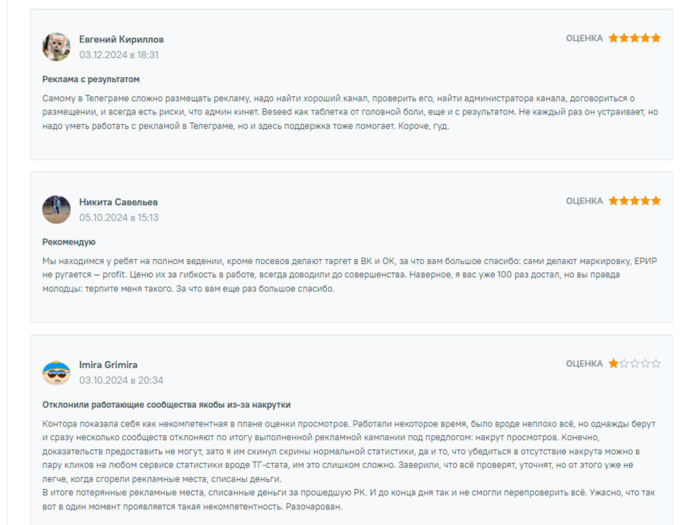 За много лет существования маркетплейс получил большое число положительных комментариев. В позитивных отзывах клиентов платформы BeSeed говорится о: