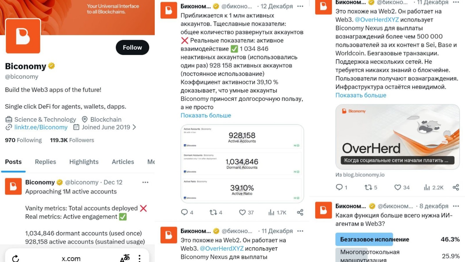 В ленте админы размещают новостные публикации о протоколе Biconomy и его криптовалюте. Плюс, рассказывают о коллаборациях, делятся успехами, например тем, что у проекта свыше 1 млн пользователей. Иногда проводятся опросы среди подписчиков о функциях ИИ и прочем. Обновление контента происходит часто.