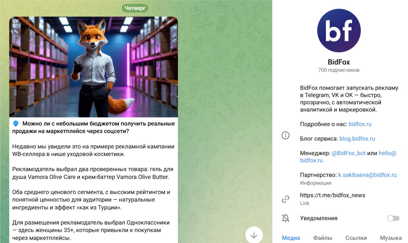 Канал BidFox существует в Телеграме. Он создан 10 ноября 2022 года. Проект имеет всего 700 подписчиков. В ленте ресурса можно обнаружить советы для рекламодателей как прокачать канал и набрать подписчиков. Посты администрации просматривают 100+ пользователей. Из этого можно сделать вывод, что советы авторов канала не работают в реальном времени.