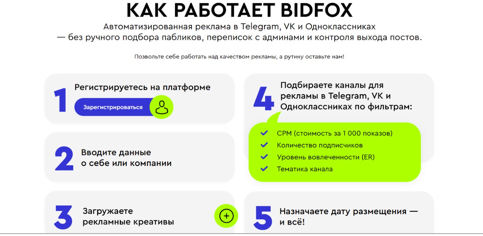 Биржа рекламы BidFox – не скам. Данный сервис имеет ряд плюсов: автоматизация процессов, полная аналитика, удобство интерфейса, маркировка рекламы. К недостаткам платформы пожалуй отнесем: