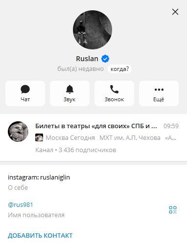 Обзор телеграмм-канала «Билеты в театры «для своих» СПБ и МСК»: отзывы подписчиков о проекте VseSvoiVTeatr и оценка вариантов сотрудничества с Rus981