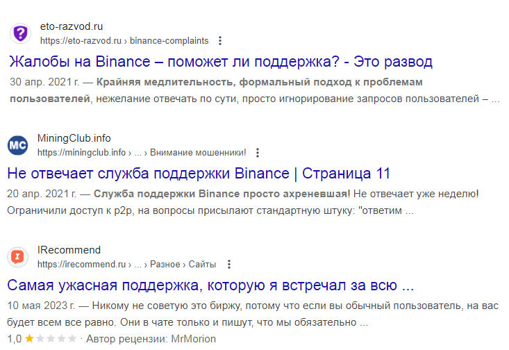 Но самый главный отрицательный аспект, касающийся надежности криптовалютной системы, заключается в наличии огромного количества негативных оценок в сети деятельности компании «Бинанс».
