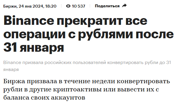 Организация в том числе и сделала невозможным проведение рублевых транзакций через кошелек «Бинанс пей».