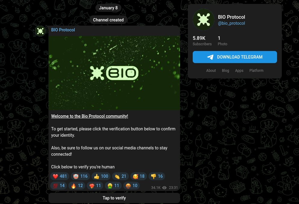 Отдельная проблема – то, как BIOProtocol представлен в мессенджерах, и тут пользователю нужно быть максимально осторожным. Из-за хайпа вокруг темы DeSci и поддержки Binance, бренд окутала целая экосистема скама.