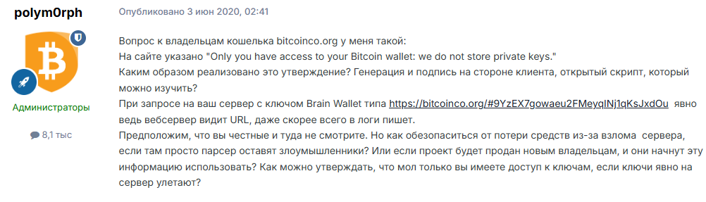 Но в июне 2020 года администратор форума задал неудобный вопрос. Что будет при взломе сервера. Как защититься от подмены скриптов злоумышленниками. Разработчики ответили: код открытый, можно проверить и скачать. Работайте офлайн, если боитесь. От взлома не застрахован ни один сервис.