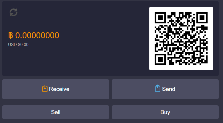 Интерфейс содержит базовые опции: получение и отправка средств, покупка и продажа криптовалюты, история операций в отдельном блоке. Дизайн минималистичный, без лишних деталей.