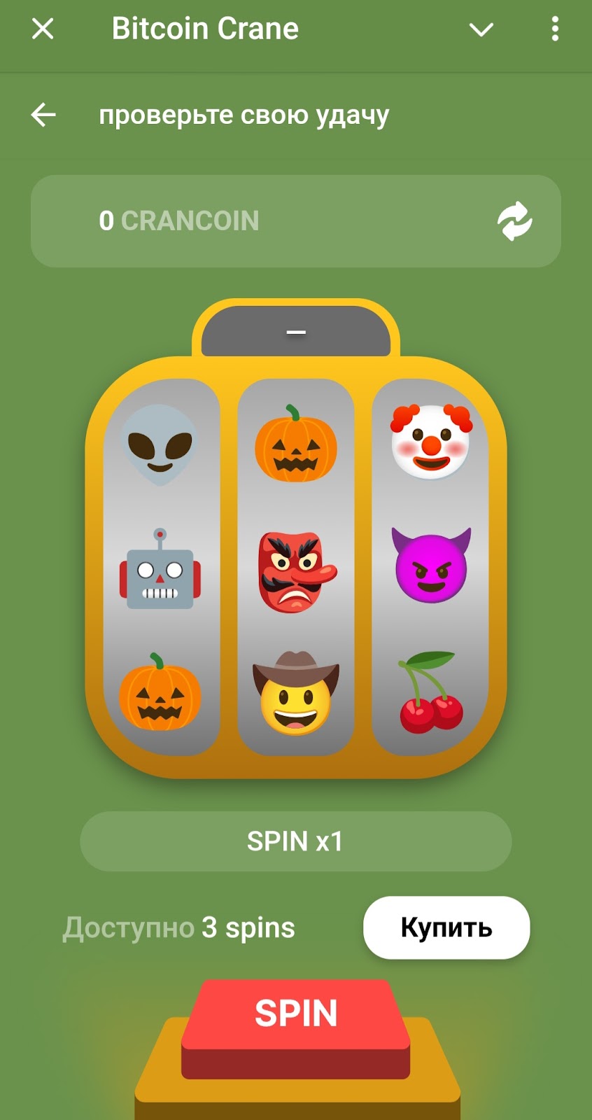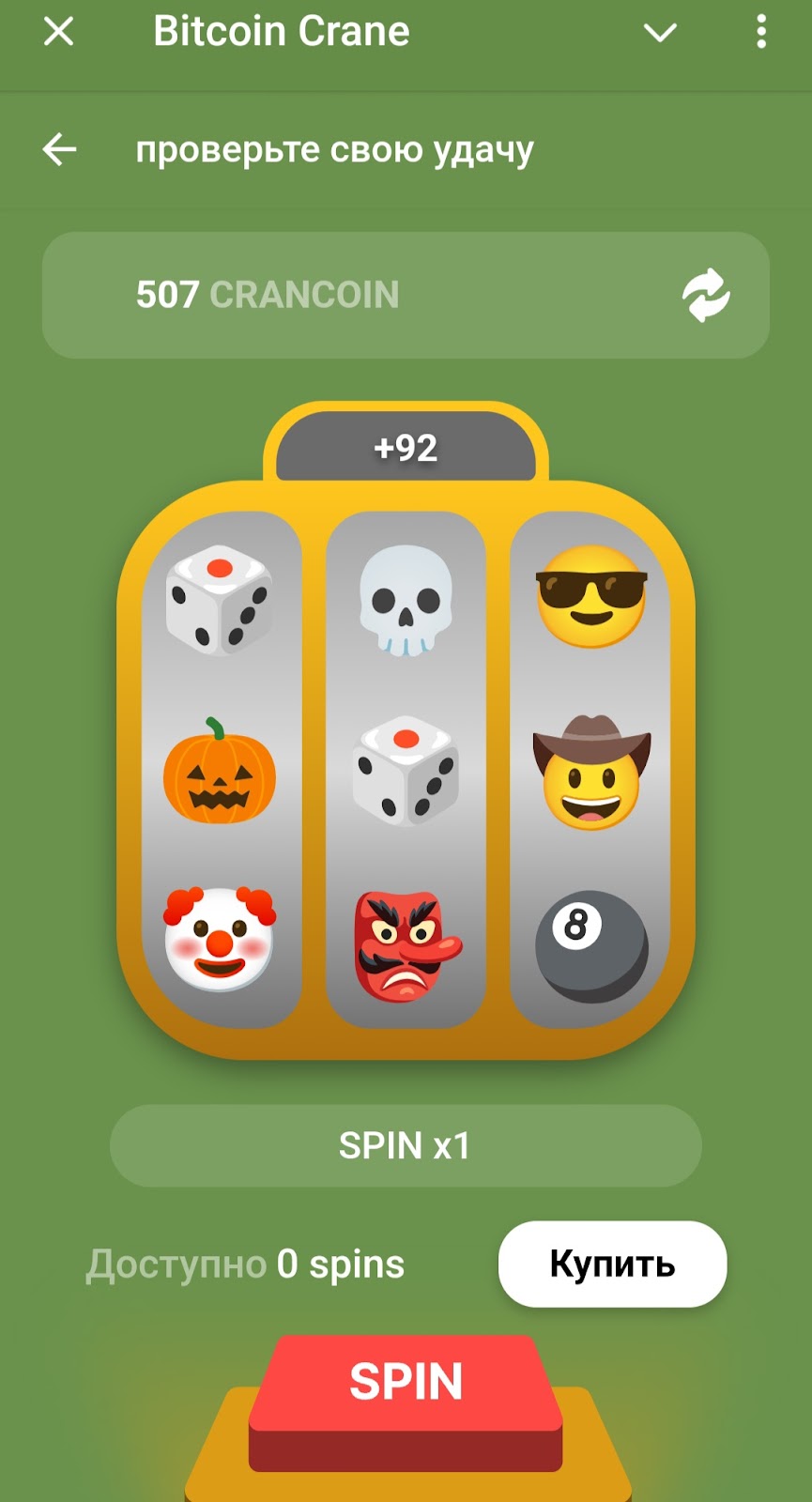 Есть в приложении барабан. В нем доступно 3 бесплатных вращения. В ходе проверки его работы все попытки оказались удачными. Вышло заработать 507 кранкоинов.