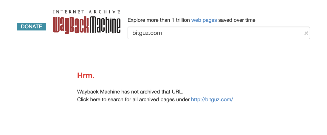 Это показывает, что сайт bitguz com проработал настолько недолго, что бот WBM не успел зафиксировать его состояние. Это с высочайшей вероятностью означает, что рассматриваемая биржа являлась сервисом-однодневкой, созданной для скама.
