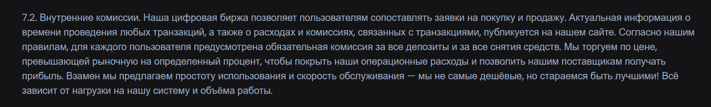 Сотрудничать с биржей, где нет возможности узнать реальные личности создателей и размеры комиссий за торговые операции является очень рискованным и может привести к потере денег, поэтому рекомендовать такие проекты нельзя.