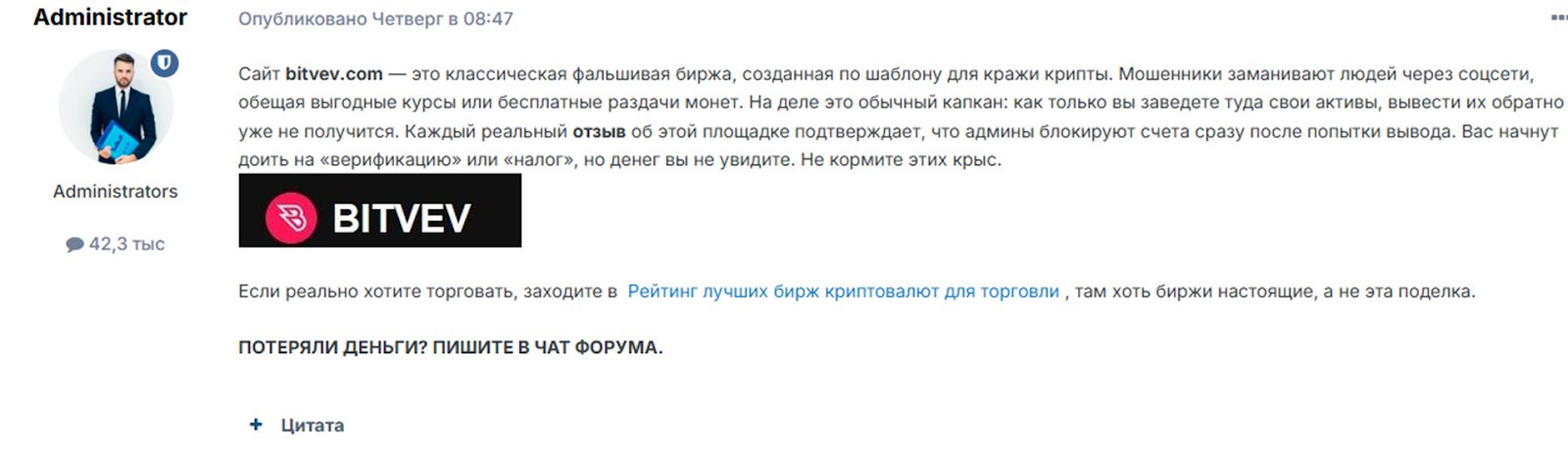 Оставьте отзыв на Bitvev com, если сталкивались с данным проектом.