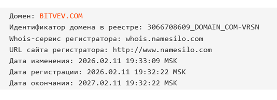 К тому же, срок работы Bitvev доказывает, что биржа никак не могла привлечь десятки миллионов пользователей. Сайт был создан и запущен в начале февраля 2026 года, то есть работает платформа всего пару недель.
