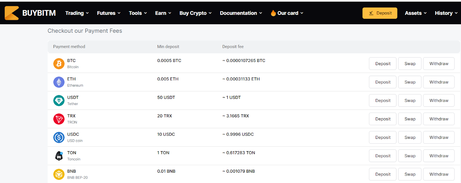 За пополнение счета на BitXc id взимают комиссию, которая зависит от актива, например, за внесение депозита в Usdt придется заплатить $1.