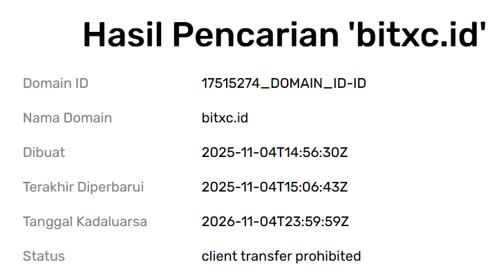 Владельцы утверждают, что компания была основана в 2022 году, но информация с сервиса Pandi показывает дату регистрации домена BitXc id 4.11.2025.