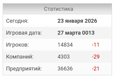 На сайте пишут, что по состоянию на 23 января 2026 года в проекте почти 15 тыс. игроков, которые создали 4,3 тыс. компаний и 36,6 тыс. предприятий.