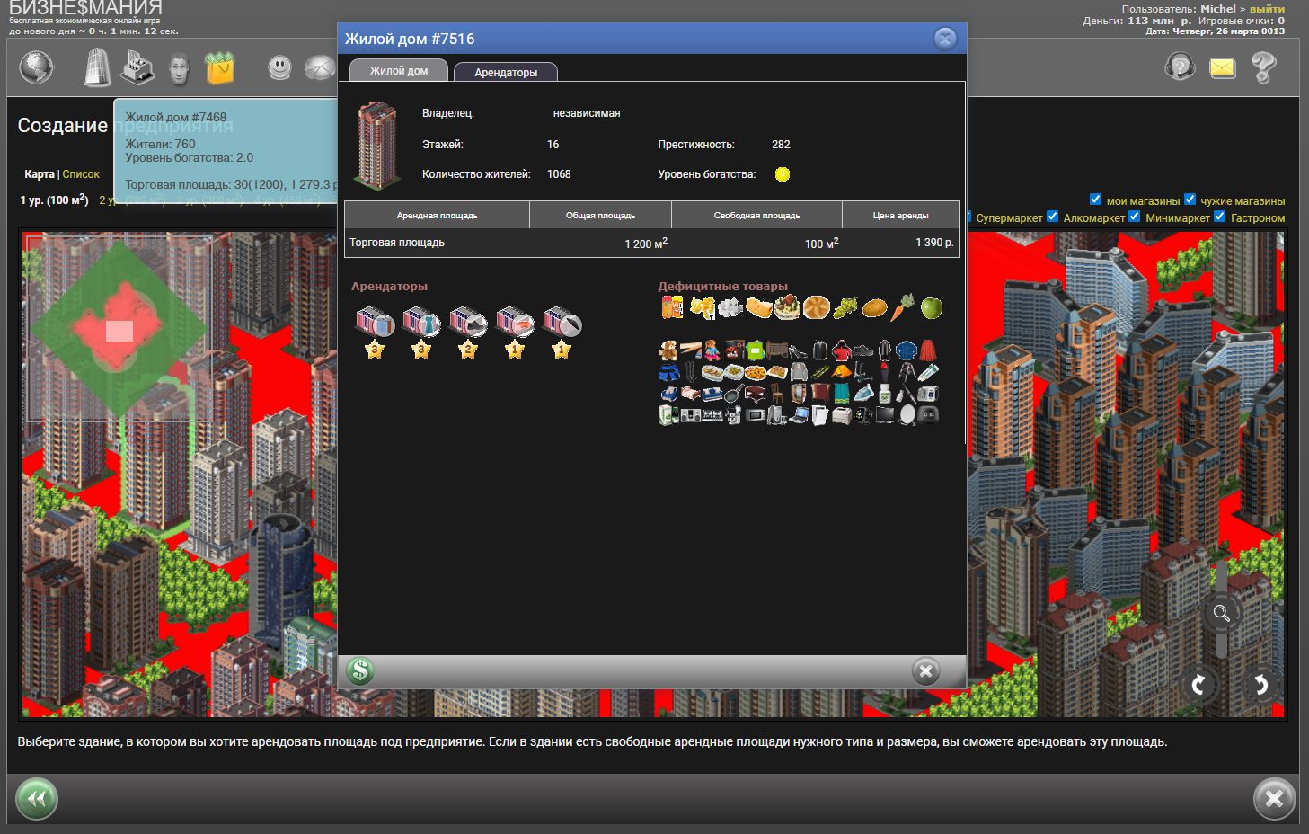 Есть и второстепенная валюта — виртуальные рубли. Они нужны для начисления зарплаты сотрудникам, уплаты налогов, аренды, доставки, заказа оборудования и товаров. Также за рубли можно приобрести у других игроков готовый бизнес. При этом нужно понимать, что обналичить внутриигровые очки или виртуальные рубли нельзя.