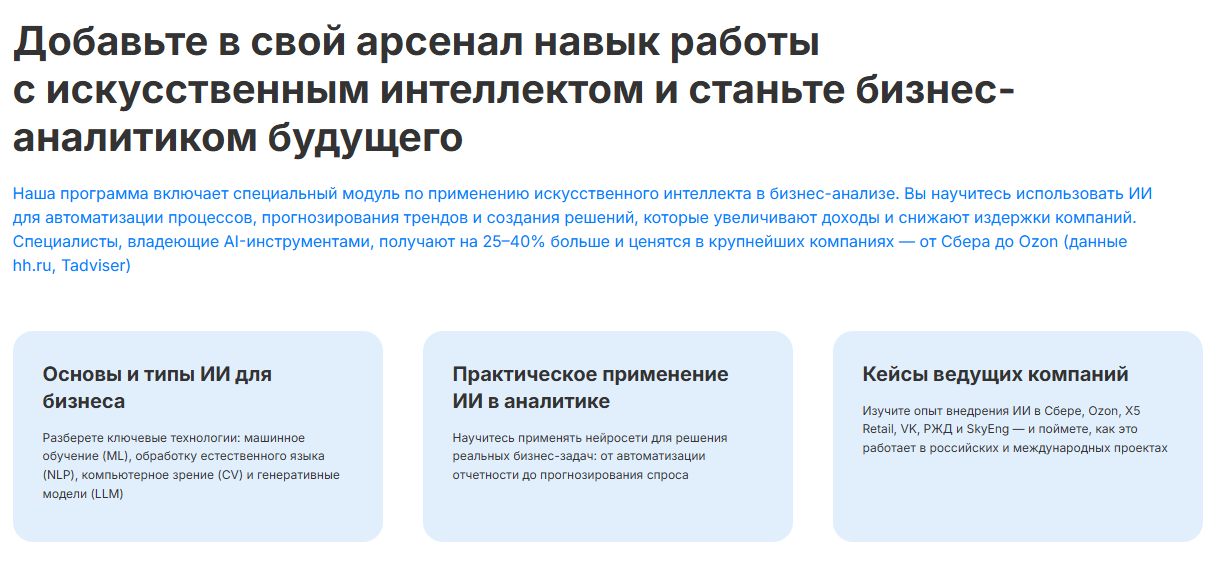 Остальные преимущества курса Бизнес аналитик от SF Education показались нам довольно сомнительными. Много из них связано с ИИ, хотя в написании промптов на самом деле нет ничего особенно сложного.