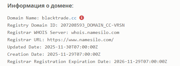 Данный домен был запущен 30 ноября 2025 года со сроком работы – 1 год. Это маленький период, который показывает несерьезные намерения руководства. Странно, что не успев полноценно запуститься, источник уже не функционирует.