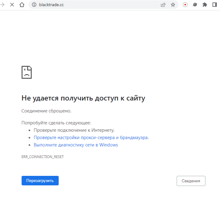 К сожалению, на момент проверки официальный сайт компании «БлекТрейд» оказался недоступен. Он не открывается даже с использованием впн-сервиса, что говорит о его блокировки на территории всей планеты. Возможно, на площадке сейчас идут технические работы.