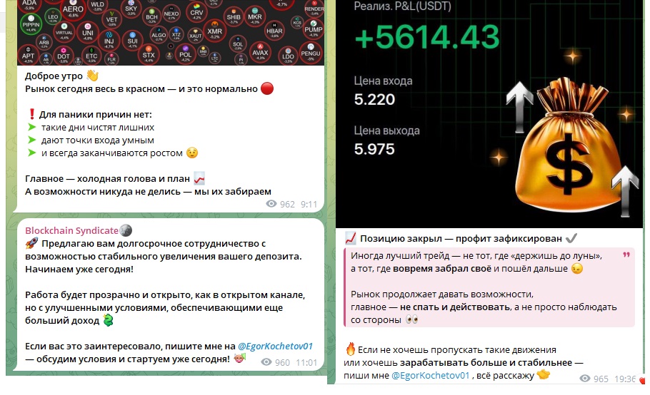 Проверка ТГ-проекта Blockchain Syndicate, отзывы пользователей о заработке с трейдером Егор Кочетов
