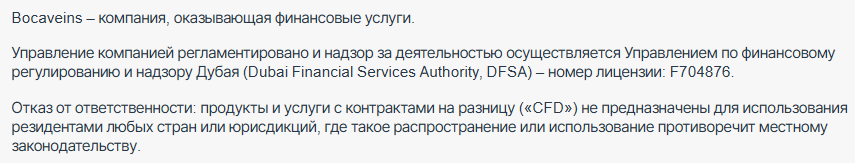 Компания якобы имеет лицензию, выданную дубайским регулятором. Но мы не видим ссылок, ведущих на официальный сайт этого органа. Скорее всего, в реальности компания работает нелегально.