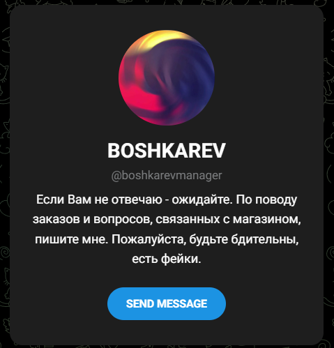 ᐈ 【 Boshkarev Shop 】 отзывы о мошенническом телеграм магазине 🛑 Правда о товарах Бошкарев Шоп