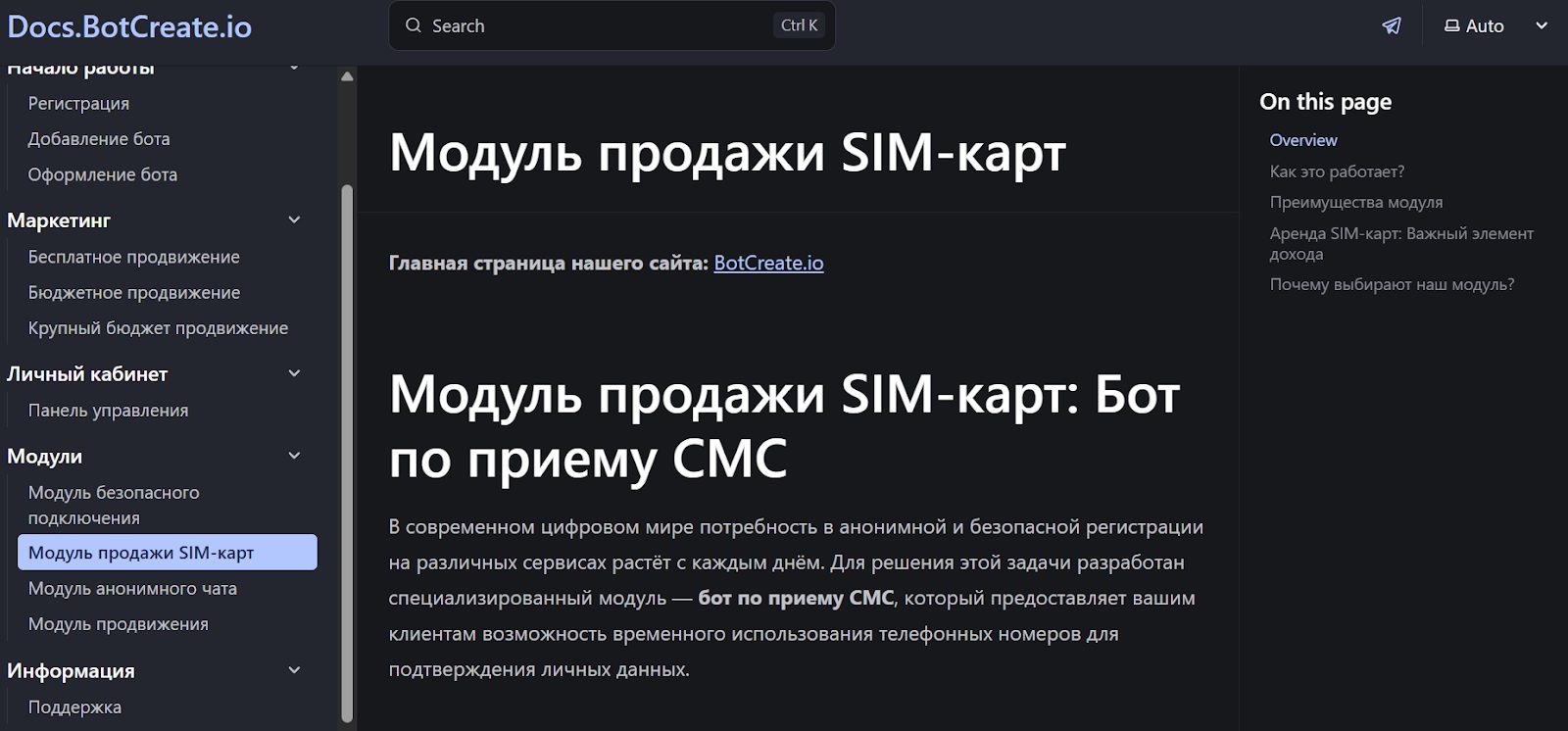 Для пользователей «Бот креате ио» позиционируется как уникальная платформа, которая дает возможность подключать своего телегарм-бота, после чего запускать его с готовыми модулями. Тут есть возможность подключать анонимный чат, продвижение в социальных сетях, создавать защищенное подключение. Отдельно стоит отметить подключение сервисов для игроков. Тут присутствует реферальная система, благодаря которой можно расширять сеть и получать дополнительный заработок.
