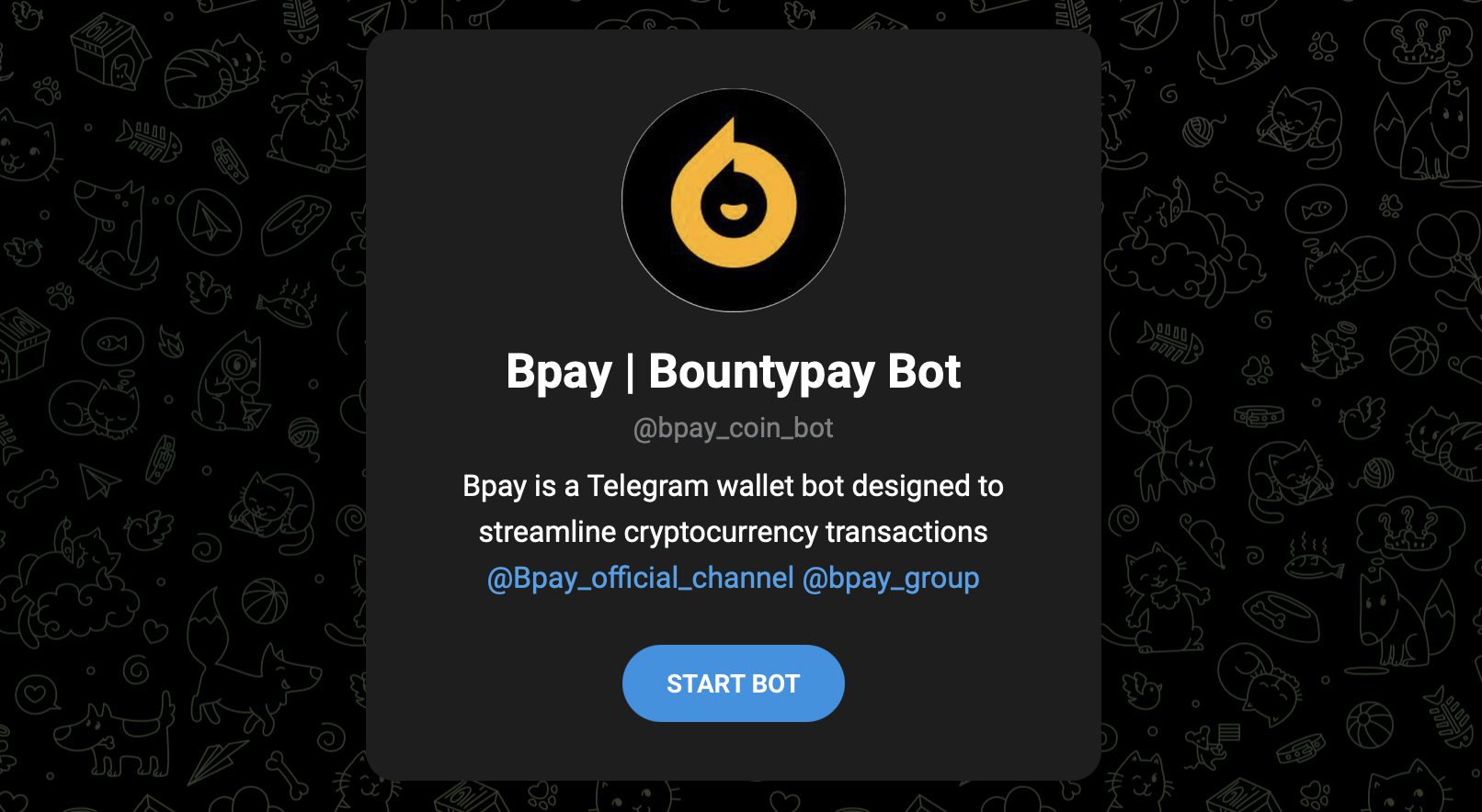 У бота достаточно обширная территория присутствия в телеграм. Прежде всего он продвигается через телеграм-бот Bpay coin bot и официальный канал Bpay Bountypay Official с аудиторией более 162 тысяч подписчиков. Также в телеграм есть сообщество Bpay Bountypay Group и упоминания в других чатах.