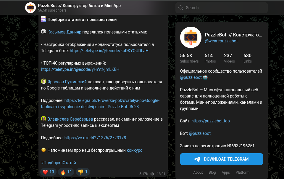 Канал PuzzleBot в Телеграмм: статистика и анализ контента