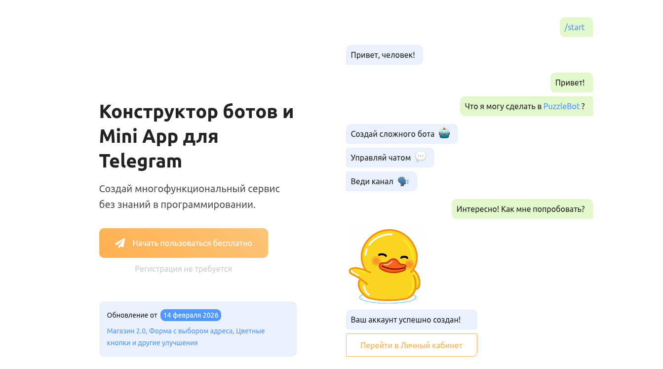 Несмотря на довольно нелепый шиллинг через @ Brawl Bonus Bot, проект PuzzleBot — это мощный SaaS-продукт для сборки Telegram-ботов и Mini Apps. На платформе можно запускать смарт-сценарии, полноценные магазины и автоворонки без привлечения кодеров.