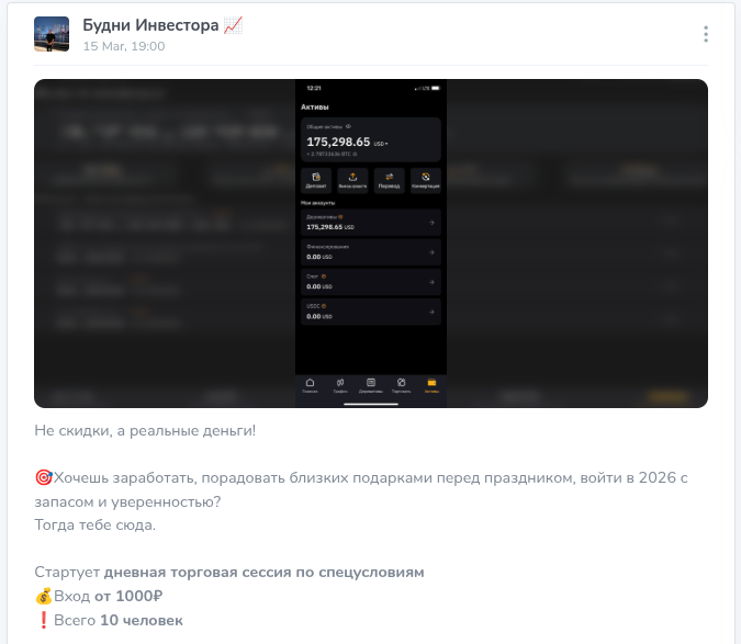 Сообщество «Будни Инвестора» аферисты предусмотрительно сделали приватным. Подобный ход часто применяют опытные скамеры, чтобы создать иллюзию элитарности и подстраховать себя на случай внезапных блокировок. Обратная связь полностью отрезана, комментарии под постами закрыты, а реакции строго ограничены позитивными эмодзи. Задавать неудобные вопросы про просадки или риск-менеджмент здесь попросту некому, ведь команда анонимов предпочитает вещать исключительно в одну сторону.