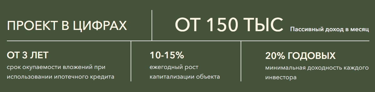 - заявлен доход до 50% от арендной выручки после вычета расходов;