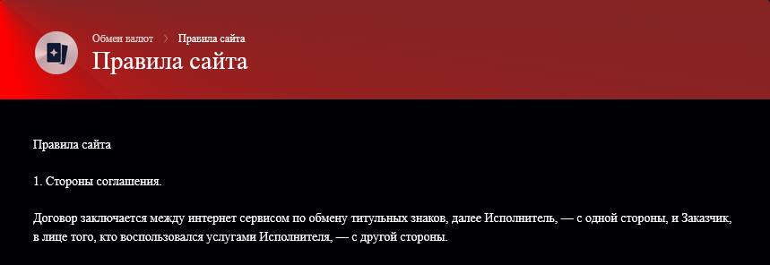 Работает проект в серой зоне, у него нет юридической подоплеки, лицензии ЦБ РФ или других регуляторов, сведения о владельцах тоже скрываются. Зато на сайте опубликованы подробные правила на 9.5 глав. В них детально описываются права и обязанности обеих сторон, полностью регламентируя процесс совершения сделок.
