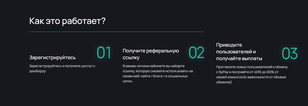 На сайте компании не представлена информация о создателях, нет ссылок на их аккаунты в социальных сетях. Более того в разделе «О нас»ничего не сказано про дату появления ByPay, дорожную карту развития. Пользователи лишь в общих чертах узнают о миссии платформы и преимуществах сотрудничества с ней.