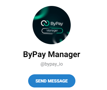 Подозрения вызывает отсутствие электронного ящика службы поддержки. Вместо нее основатели платформы советуют обращаться в личный профиль главного менеджера компании в мессенджере Телеграмм с названием ByPay Manager.