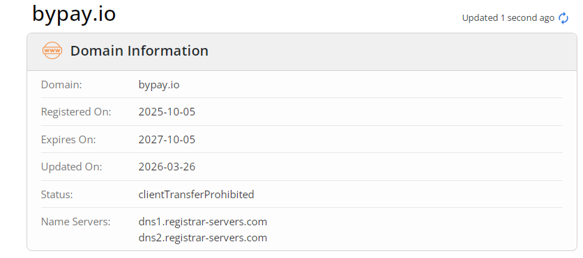 У платформы нет лицензии от ЦБ РФ, подтверждающей легальную работу компании на территории РФ. Более того проверка «БайПэй» через «Who Is» показала недавнюю регистрацию домена – пятого октября 2025 года. Это значит, что проект совсем молодой и еще не заработал никакой репутации.
