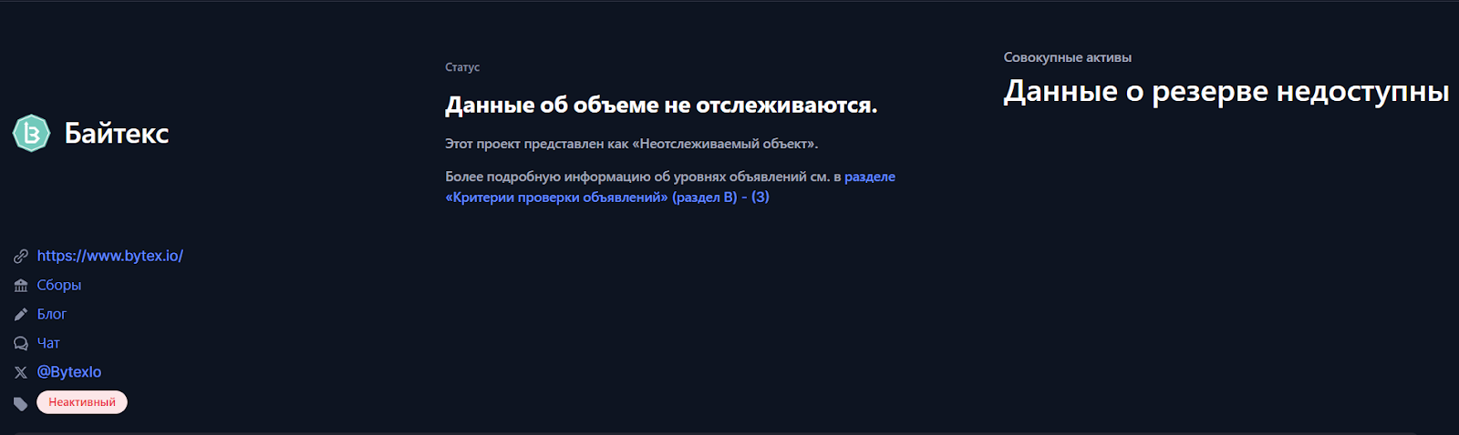 С первого взгляда проект ByteX выглядит надежным, но стоит изучить его более подробно, выясняется, что аудитов по резервам и объемам торгов от сторонних сервисов нет, а некоторые пользователи пишут про мошенничество, поэтому связываться с таким проектом мы не рекомендуем.