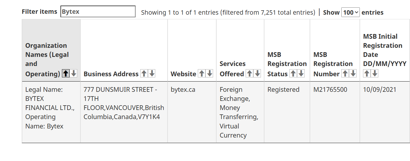 Проект представляет собой платформу, где можно торговать криптовалютой и брать займы под залог цифровых активов, причем здесь сочетаются централизованные и децентрализованные услуги. Владельцы заявляют, что получили лицензии в нескольких странах, а проверка показала, что компания ByteX Financial Ltd Canada действительно присутствует в реестре регулятора, причем с 2021 года.