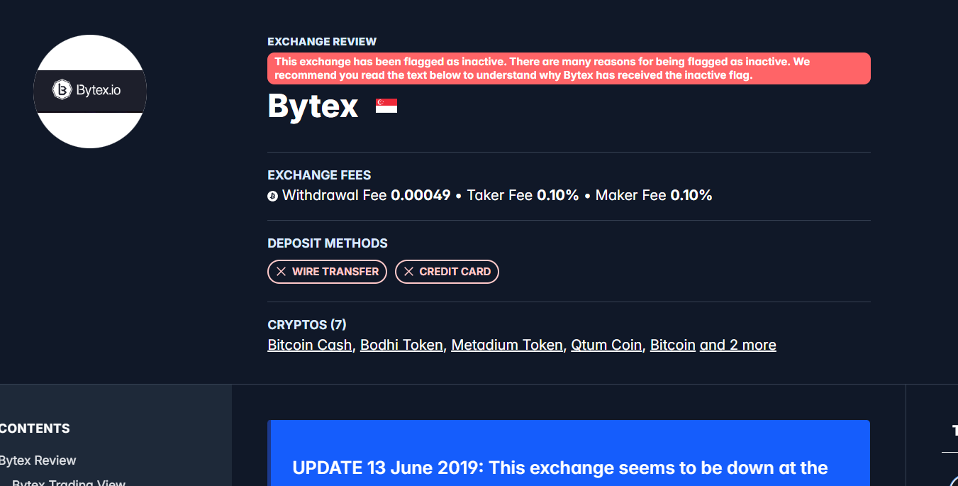 При этом биржа отмечена неактивной, но это было еще в 2019 году, так что информацию нельзя назвать актуальной.