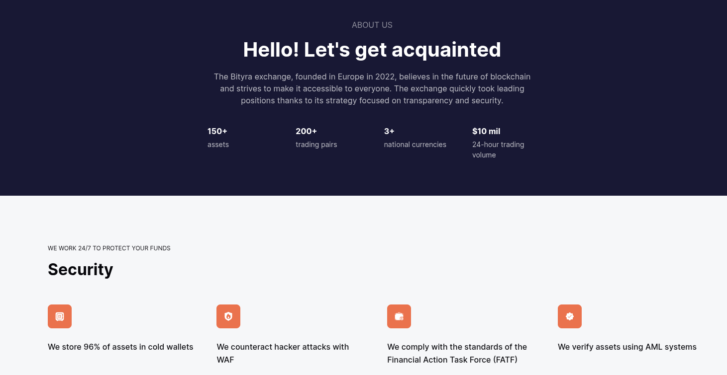 Площадка BytFax встречает пользователей довольно стильным, но абсолютно шаблонным сайтом. Дизайн, текстовое наполнение и даже архитектура меню один к одному скопированы с десятка аналогичных мошеннических платформ. То есть «Битракс» — это просто клон из целой сетки скамных проектов.