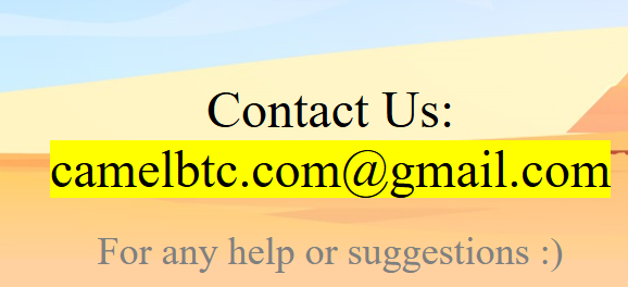 Единственный способ связи с разработчиками — адрес электронной почты Camelbtc com @ Gmail com. Мы не имеем ни малейшего понятия, что за люди стоят за рассматриваемой разработкой. Если у пользователя возникнут к ним претензии, он не сможет получить нужную информацию или консультации.