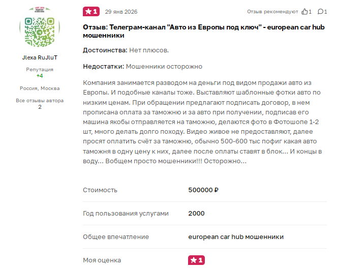 - в интернете о мошеннической площадке CarHubAuto граждане оставляют негативные отзывы.