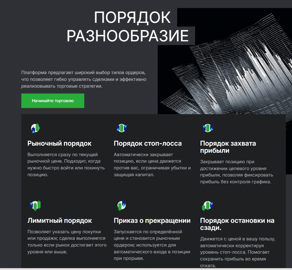 Еще брокер много говорит о типах ордеров. Расписывают рыночные ордера, стоп-лоссы, тейк-профиты, лимитные заявки. Для новичка это выглядит как доказательство серьезности платформы. Мол, раз такие сложные инструменты есть, значит, все по-взрослому.