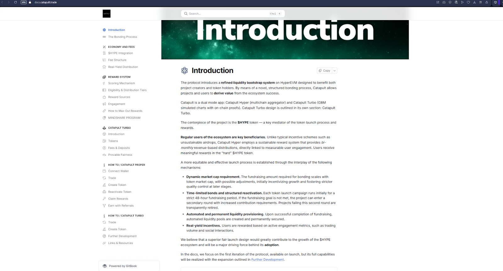 В версии Hyper клиент запускает 48 часовую продажу, задает цель сбора HYPE, а кривая бондажа меняет курс токена по мере заполнения пула. Также важно знать, что 12.5% собранных средств блокируются в LP-NFT навсегда, благодаря чему ликвидность сохраняется после окончания продажи. Комиссии распределяются каждые две недели, часть уходит протоколу, остальное делят топ-пользователи лидерборда. Версия Turbo открывает короткие сессии длительностью от трех минут до четырех часов, где трейдеры покупают и продают симулированные активы. Цены на Catapult trade формируются заранее, шифруются через Hash-Commit и раскрываются после завершения раунда, так что манипуляции со стороны сервера исключены.