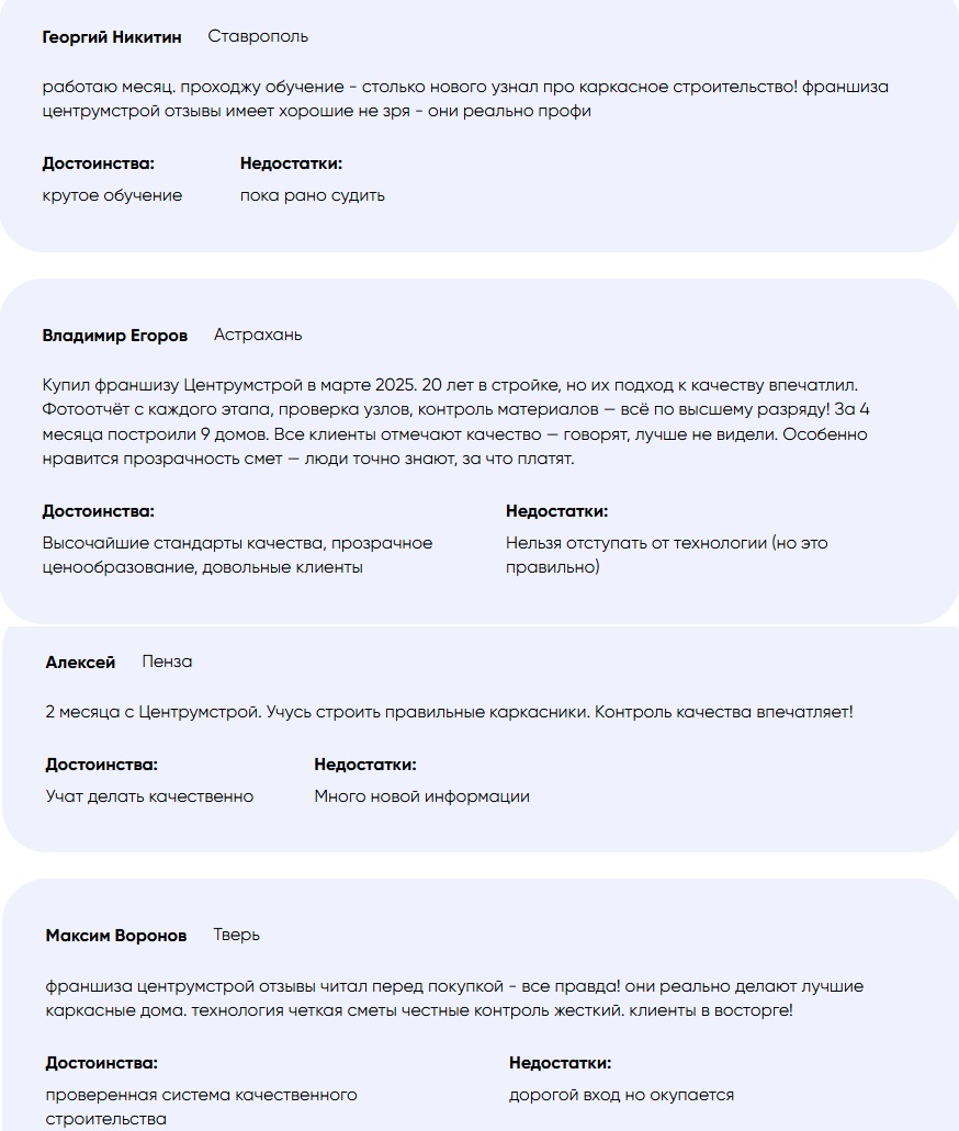 В таком же тоне и отзывы о франчайзинге от ЦентрРумСтрой.
