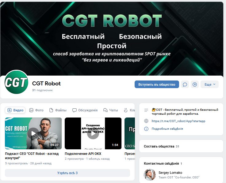 Мини-приложение CGT Robot отзывы получает положительные. Эта программа для Телеграмм предназначена для спотовой торговли в автоматическом режиме. Разработчиком бота является Сергей Ломако, известный также в качестве директора сервиса Exchange Coins Service LLC. Скрипт был запущен примерно 9 месяцев назад, за это время он показал хорошие результаты.
